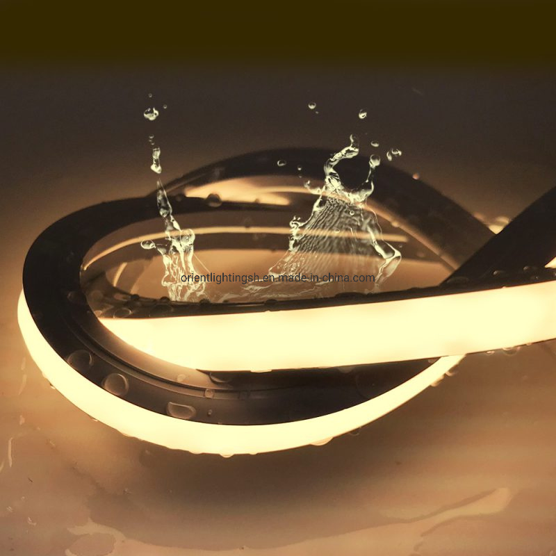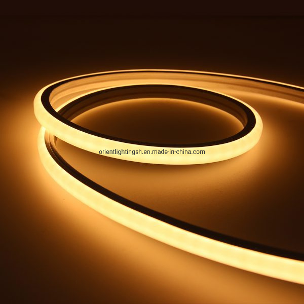 OL-2835NP-1615mm15W-12024-65K | 6500K Cold white | Silicone Neon Led Constant Current /Constant Voltage Flexible Strip Light Front View 1615,24VDC, 15W/M ,50-930lm/m,IP67-65 waterproof,CRI >90 , working temperature -25ºC - 60ºC, size W16mm*H15mm, 1x30cm 20AWG 2-pin bare wire comes out at front/side/bottom,2700K/3000K/4000K/6500K, 2pcs mounting clips per meter,2pcs transparent endcaps, 5m/roll |