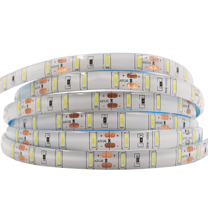 LED strip 7020 SMD Ultra Bright Cold white Waterproof 12V 5m 60leds/m stripe light brighter SMD 5630Package included:1 x 5m SMD 7020 led stripDescription:Product Name:SMD7020 LED Strip super brightLed quantity : 60Leds/m, 90Leds/mLuminous Flux: 25-30lm/LedColor Tempreture:7000-10000K(Cold White)LED ......
