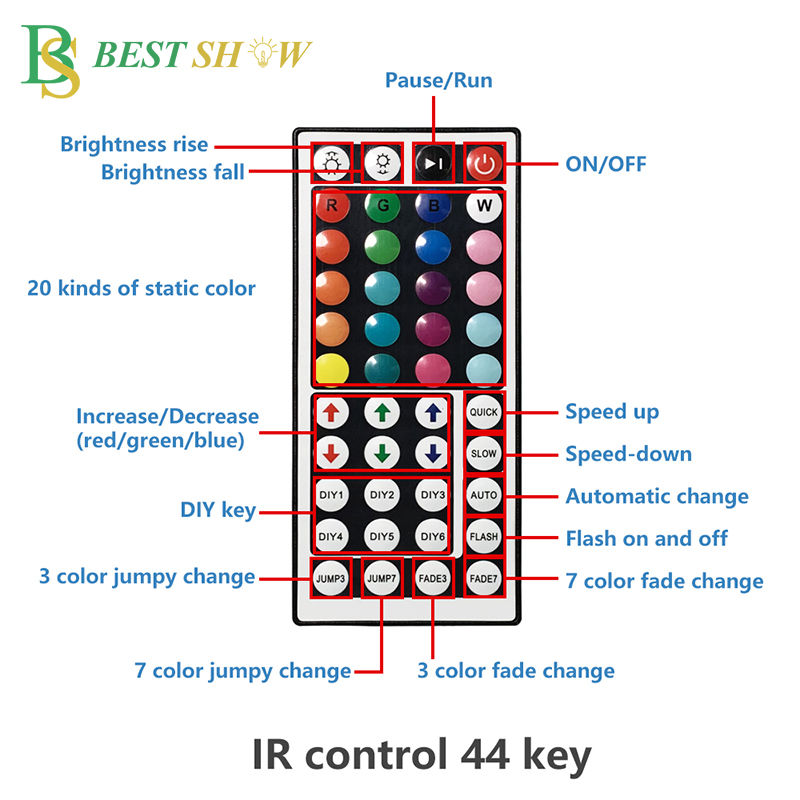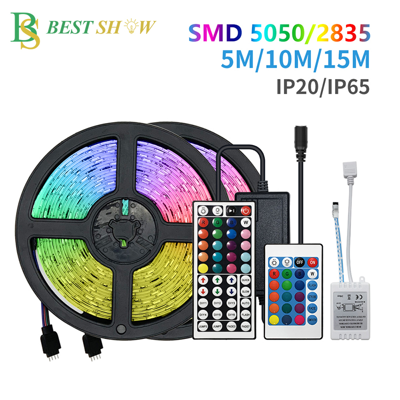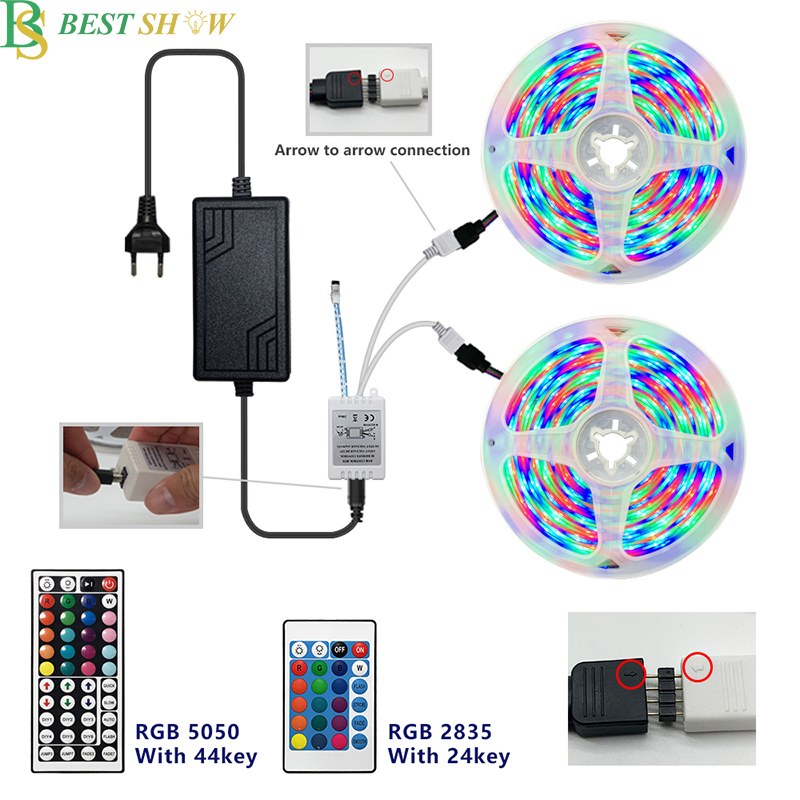 ItemRGB LED strip lightLED TypeSMD5050 / SMD3528LED quantity 60leds/mLight colorWW/W/CW/R/G/B/Y/RGBIP GradeNon-waterproof IP20 or Waterproof IP65Single Package26x20x5cmLength5m per set / 10m per set /15m per set / customizeWarranty2 yearsOne set include LED Strip 5m/roll *11 controller *124key remo......