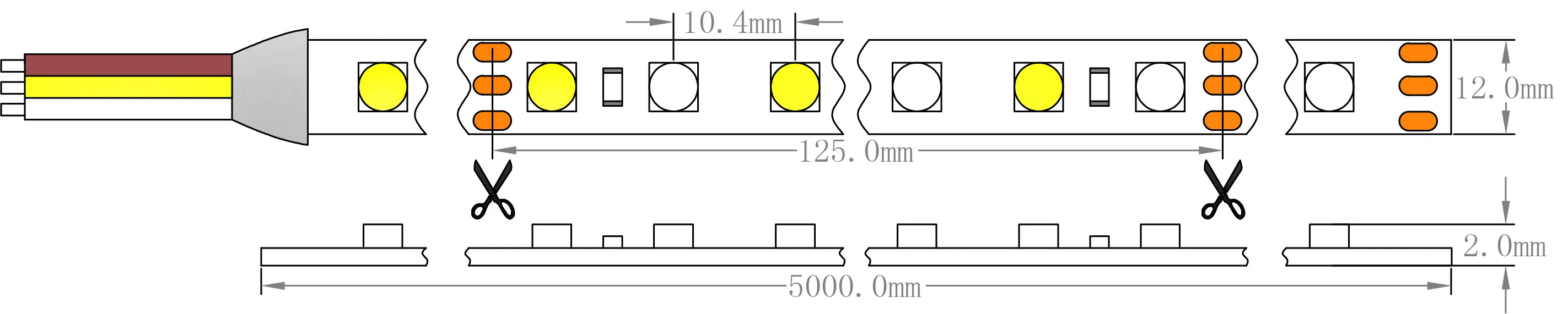 | OL-3014FHC-12024-VW | 2700K-6500K | High CRI OSRAM SMD 3014 Color Temperature Adjustable Flexible Strip, 120 LEDs/M, 24VDC, Max.19.2W/M, 1780-2180LM/M at Mix ,120° beam angle, CRI>80, IP43/65/66/67/68, 10mm wide White copper PCB, TESA 4965 back tape, 1x20cm 20AWG 2-pin bare wire, UWW/WW/NW/CW, 5M/Roll. |