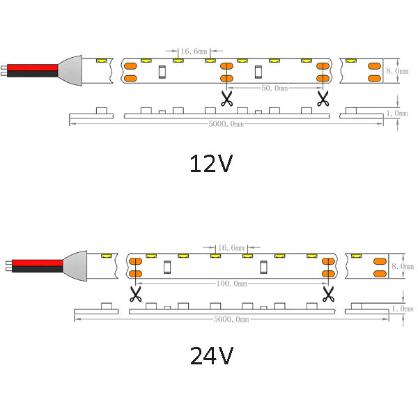 | OL-335FP-6012/24-R/B/G/W/WW | red blue green amber 2700K 3000K 4000K 6500K | Premium Epistar SMD 335 Side Viewing Strip, 60 LEDs/M, 12/24VDC, Max 4.8W/M, 350-460 LM/M at White, 120° beam angle, Common CRI, IP43/65/66/67/68, 8mm wide White flexible PCB, 200MP 3M back tape, 1x20cm DC connector/1x20cm 20AWG 2-pin bare wire, R/G/B/UWW/WW/NW/CW, 5M/Roll. |
