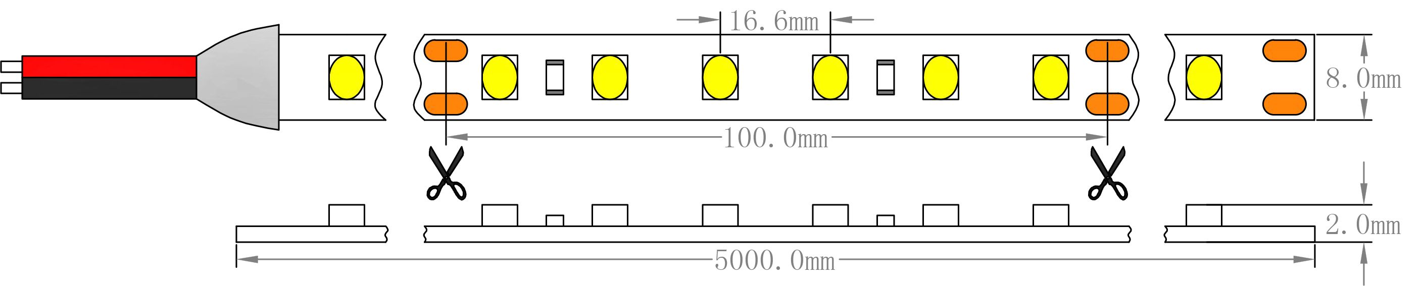 OL-1210FP-6012/24-W | 2600K 3000K 4000K 6500K | Premium/ Standard Epistar SMD 1210 Flexible Strip, 60 LEDs/M, 12/24VDC, Max 4.8W/M, Max. 360-520 LM/M at White, 120° beam angle, Common CRI, IP43/65/66/67/68, 8mm wide White flexible PCB, 200MP 3M back tape, 1x20cm DC connector/1x20cm 20AWG 2-pin bare wire, R/G/B/UWW/WW/NW/CW, 5M/Roll. |