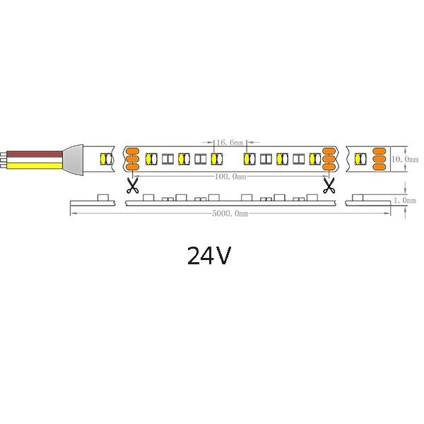 | OL-3014FHC-12024-VW | 2700K-6500K | High CRI OSRAM SMD 3014 Color Temperature Adjustable Flexible Strip, 120 LEDs/M, 24VDC, Max.19.2W/M, 1780-2180LM/M at Mix ,120° beam angle, CRI>80, IP43/65/66/67/68, 10mm wide White copper PCB, TESA 4965 back tape, 1x20cm 20AWG 2-pin bare wire, UWW/WW/NW/CW, 5M/Roll. |